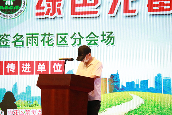 大会还对举报毒品违法犯罪有功人员进行表彰,临近会议尾声,红袖章、禁毒妈妈联盟、消防队员、辅警、协会代表上台跟读,全场起立宣读倡议书,号召广大群众积极参与防毒治毒行动中来,共创无毒、健康雨花。