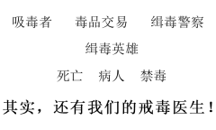 当你听到 “注射器 毒品 生命 病人”你会想到什么? 当他们说,“我是戒毒医生”的时候 大部分人会问:“戒毒,还有医生? “我们的病人是吸毒者” “那工作环境挺特殊的吧” “